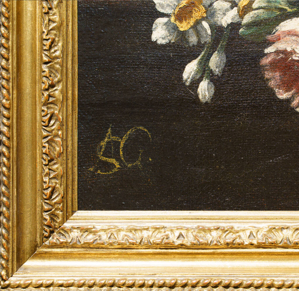 La composizione, di impianto classico, mostra l’influenza della pittura decorativa romana e napoletana del Settecento, in particolare delle botteghe che facevano capo alla cerchia di Mario Nuzzi (detto “dei Fiori”) e dei suoi seguaci. L’attenzione al dettaglio botanico e la costruzione del vaso dorato suggeriscono la mano di un artista di buon livello, attivo tra Roma e l’Italia settentrionale.